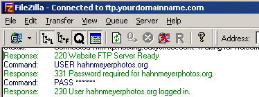 | 2. | Click on the site that says ftp.yourdomain.com and FileZilla will attempt to connect. |